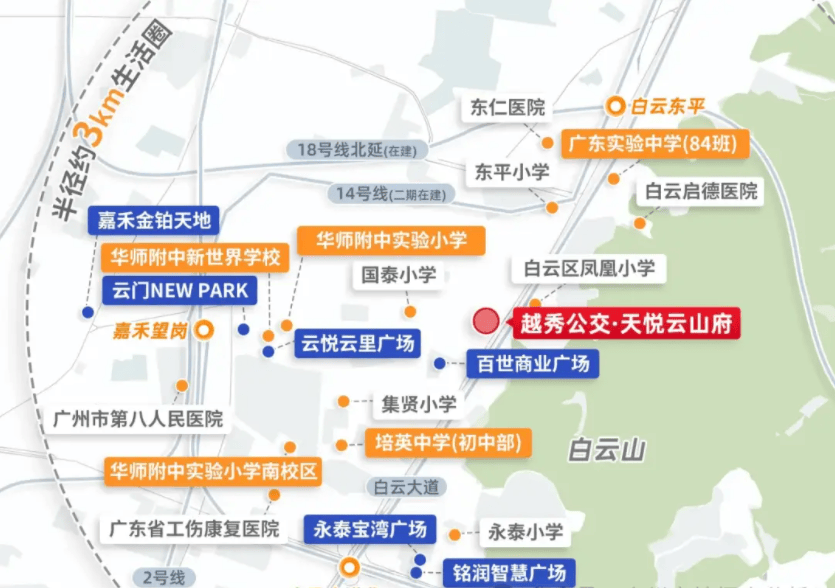 更惊喜的是,项目周边的教育资源堪称“顶配”,形成了覆盖幼、小、初、高的全龄段教育生态圈,满足孩子不同阶段的教育需求。距离项目1.2公里内,广东实验中学永平校区(初中部已开学)已投入使用,提供优质初中学位;3公里半径内,更汇聚了华师附小、培英中学、同和中学、嘉禾中学等11所优质学校,涵盖小学、初中、高中各个阶段,无论孩子处于哪个教育阶段,都能就近享受优质教育资源,真正实现“上学不用愁,成长伴书香”[参考白云区教育局官方学区规划文件,具体入学政策以教育部门规定为准]。